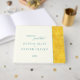 Boda Libro de Huéspedes con fondo de color de la hoja de oro y estampado floral flores verde azuladas de color con ramas doradas. Vintage acuarela Boda Guest Book. Colección dorada amarilla.