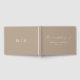 Elegante libro de bodas con "el boda de" expuesto en un moderno guión de caligrafía blanca sobre un fondo de taupe. Personalice la parte delantera del sencillo libro de bodas con sus nombres y fecha de boda. En la parte posterior del libro de visitas taupe se muestran las iniciales del monograma. Añade tu nombre de matrimonio y fecha de boda a la columna vertebral del libro de invitados.