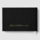 Un elegante y sofisticado libro de bodas negro y dorado que incluye caligrafía de swash de Relieve metalizado dorado con sus nombres en una moderna fuente san serif en el frente, columna vertebral y cubierta trasera.