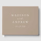 Elegante libro de bodas con sus nombres y fecha boda con letras blancas con fondo de taupe. Personalice la columna vertebral del simple libro de bodas con su nombre y fecha de boda casados.