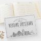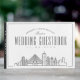 Crea una impresión con un libro de invitados de boda único. Este libro de invitados de boda con tema de Boston presenta un horizonte moderno y único de la ciudad en la parte inferior y los nombres de la pareja, el nombre de la ciudad y la fecha de la boda encima.