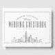 Haga una impresión con un libro de bodas único. Este libro de bodas con temática de Chicago presenta un moderno y único paisaje de la ciudad hacia el fondo y los nombres de la pareja boda, el nombre de la ciudad y la fecha de matrimonio por encima. Los estilosos y amplios elementos de texto en línea abierta complementan la parte delantera y espina dorsal del libro, mientras que el gris de carbón sólido cubre la columna vertebral y la espalda. Un tratamiento visual que captará los ojos de los invitados bodas y de los inquilinos y los dejará con ganas de dejar su firma personalizado y mensaje dentro.