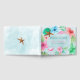Una acuarela azul turquesa lavó el libro de bodas moderno y caprichoso con una colorida corona tropical de hibiscos con hojas, un flamenco rosa y una estrella de mar. +++++++++++ La colección hawaiana es perfecta para un luau de verano moderno, aloha beach, sea, oceanfront, costero, tropical, náutico o boda temático de destino.