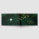 Un fondo acuático en tonos verde esmeralda se ve dominado por un resumen de líneas doradas finas y efectos luminosos que crean las piezas de esta bonita suite boda. El libro de bodas que se muestra aquí también incluye un mensaje personal y un bello marco de degradado para mantener sus iniciales y la fecha de boda en la parte posterior. Busque ID867 para ver otras piezas y opciones de color para este conjunto.