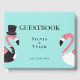 Un libro de bodas con un tema flamingo. Cuenta con una novia flamingo y un novio flamingo. Simplemente agregue sus nombres y fecha, añada este libro de visitas a su carrito y disfrute de su boda lleno de flamingo. Flamingo Boda Guest Book Holiday Design | ©Melissa Patton - Diseñador/Ilustrador
