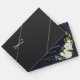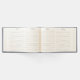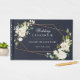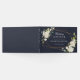Moderno y de moda, este libro de boda presenta una decoración de diseño de cobre falso con formas florales de color blanco y eucalipto, y una textura moderna de azul marino. Copyright Elegant Invita. Todos Los Derechos Reservados.