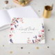 Libro de invitados de boda personalizado con un hermoso diseño floral, rosa y púrpura, se puede personalizar con sus nombres y fecha.