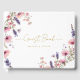 El Boda personalizado Guest Book presenta un hermoso diseño floral, rosa y violeta, que puede ser personalizado con sus nombres y fechas.