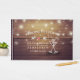Plantillas de libros de visitas bodas - Guión con letras elegantes, Gafas de champán vintage y luces de cadena sobre fondo de madera rústica. ¡Un Diseño Perfecto Para Tu Gran Día! Todos Los Estilo De Texto, Los Colores Y Los Tamaños Se Pueden Modificar Para Ajustarse A Sus Necesidades.