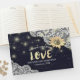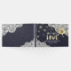 Plantillas de libros de visitas bodas - Elegantes girasoles, marco de encaje vintage y cadenas de Moda sobre fondo azul marino. ¡Un Diseño Perfecto Para Tu Gran Día! Todos Los Estilo De Texto, Los Colores Y Los Tamaños Se Pueden Modificar Para Ajustarse A Sus Necesidades.
