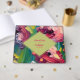 Texto rosa caliente sobre forma de diamante verde claro con pintura al óleo inspirado en el fondo floral.