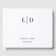 Boda moderno y sencillo o libro nupcial. Texto en blanco y negro con un estilo mínimo. Simplemente agregue sus iniciales o monograma, texto y nombres.