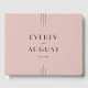 Este libro de bodas de la Everly Collection presenta un diseño rosa y lujoso, con detalles refinados en la línea Art Déco y una elegante tipografía negra. Es perfecto para bodas de moda, de inspiración vintage. Personalice la portada con los nombres de la pareja y la fecha del boda.