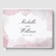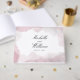 Un elegante diseño de bodas con una acuarela rosa claro pintada en un fondo blanco diseñado por Shelby Allison.