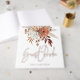 Boda rústico de Terracota de otoño florals. Hermosas flores con colores de otoño de browns y cremas están en la parte superior de la escritura, el Libro de invitados está en un elegante guión, y el resto del texto en la parte delantera, trasera y espina dorsal que se puede personalizar fácilmente. Todas las palabras se imprimen en Relieve metalizado real en la elección de oro, oro rosa o plata para un toque de lujo glam.