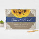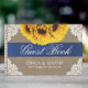 Sunflower Lace & Burlap Blue Ribbon Rústico Boda Libro De Huéspedes.