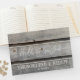 Un libro de bodas rústico pero moderno con un fondo de madera de granero gris templado. Encantador y moda con dos tipos de letras: una cursiva divertida con un aspecto manuscrito -con florituras- y tus nombres con un estilo occidental angustiado, por la auténtica pátina de un viejo cartel. Personalice con sus nombres y fecha de boda, que aparecerán en la portada y en la columna vertebral. Suavizar el color del texto blanco. Perfecto para un ambiente rústico y boda en un granero, granja, rancho o boda de temática occidental en cualquier lugar.