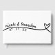 Sencillo libro de bodas de corazón blanco y negro con el nombre de la novia y la fecha del aniversario.