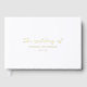 Libro de invitados de boda moderno con foil que presenta un diseño simple con fuentes clásicas serif y elegantes script. El diseño incluye "la boda de" y sus nombres y fecha de boda en foil real.