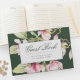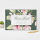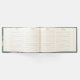 Un libro de bodas de estilo vintage con ramas de magnolia de acuarela rosa sobre un fondo verde de sabio oscuro y personalización de la cubierta frontal.