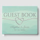 Simple y elegante libro de bodas de acuarela verde menta con elegante corazón de cuerda gris plateada y escritura moderna de caligrafía.
