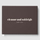 This wedding guest book features a simple, modern layout with the couple’s names centered on a deep neutral background. A timeless option for couples who want their reception details to feel polished and intentional. Personalize the names and date to create a keepsake you’ll enjoy revisiting long after the celebration.