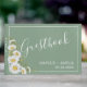 diseño de libro de visitas boda bonito con acuarela de color blanco esquina sobre fondo verde basilo con bloques de texto de personalizable blanco en fuentes modernas