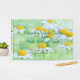 Las animadas margaritas blancas y amarillas florecen en un campo verde para un libro de visitas para su boda. Un elegante tipo de letra de guión en menta oscura enumera los nombres completos de la pareja, que se utiliza un tipo de letra menor que contrastan para la fecha boda y la ubicación del boda. Recuerde sustituir su información sobre la columna vertebral por un libro de visitas verdaderamente único para su evento