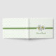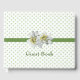 libro de bodas bonitos hecho con un patrón de puntos de polka verde sobre blanco, con edelweiss alpinos blancos decorando el frente. El texto verde lee el Libro de invitados y se puede personalizar para leer lo que se desea.