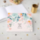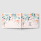 Un libro de visitas con un elegante borde floral. Flores y hojas en rosa y verde.