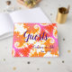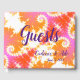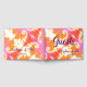 El libro de visitas Bright Boho presenta un divertido diseño abstracto en tonos rosa, fresa y naranja, sobre un fondo blanco y una columna vertebral rosa. La redacción es una escritura violeta, que es totalmente personalizable. Puedes usarlo en recepciones, fiestas de compromiso, aniversarios y otras ocasiones festivas. Diseñado para coordinar con otros elementos bodas de Bright Boho.
