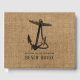 Libro de invitados gráfico burlap de moda con un personalizable de ancla vintage a sus especificaciones. La burlap se simula en la obra de arte y no se utilizará ninguna burlap real en la fabricación de este producto.