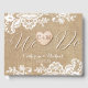 ¿Buscando el perfecto diseño rústico de bodas rurales? ¡No hay más que burlap y lace! El diseño de la burlap y de los encajes presenta un delicado encaje blanco emparejado con una burpía natural, creando un encantador estilo rústico perfecto para cualquier boda de campo. El encaje floral le da un toque de elegancia, mientras que el burlap le da un toque rústico. El diseño también incluye elementos de madera, lo que añade al ambiente rústico y natural de la temática de la borrega y el encaje. Y para un toque personalizado, añada su monograma a este diseño.