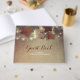 Hojas de arce y burrega rústica + cuerda de luces caída libros de invitados de boda