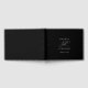 Este libro de invitados de boda de monograma negro oscuro de caligrafía romántica es perfecto para una boda sencilla. El diseño clásico moderno cuenta con giros elegantes y florituras caprichosas con tipografía elegante y escrita a mano sobre un fondo negro oscuro. Personalice la portada y el lomo con los nombres de la pareja y la fecha de la boda.
