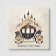 Este elegante diseño cuenta con un carruaje femenino de cuento de hadas de azul marino con un castillo de princesa detrás adornado con flores rosas rubias.
