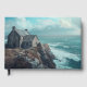 Arte digital con una casa de campo medieval en un acantilado con vistas al océano. Generado por IA.