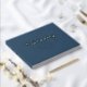 Customer specific, memorial, elegant, simple "Celebration of life" elegant handwriting font, blue funeral foil guest book. Availible in gold, rose-gold and silver foil.