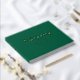 Customer specific, memorial, elegant, simple "Celebration of life" elegant handwriting font, green funeral foil guest book. Availible in gold, rose-gold and silver foil.