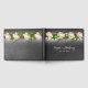 Un libro de boda de pizarra con una hiedra, un hilo de luces y rosas rosas rosas. Este libro de bodas forma parte de un conjunto completo.