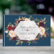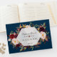 Encantador, Borgoña, Rojo, Marsala Floral diseño de tarjetas. Se trata de un magnífico decorado con flores borgoñas, marsala roja y acuarela, de forma semitransparente, todo de fondo azul marino. Utilice la herramienta Personalizar para agregar su información. Para ver los artículos a juego, por favor visite mi colección floral Borgoña Red Marsala