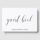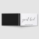 Libro de invitados de desayuno de novia con tipografía, con el título "libro de invitados" en caligrafía negra y su nombre y título del evento debajo, sobre un fondo blanco. Su información también está en la columna vertebral. La parte posterior y la columna vertebral son negras y pueden cambiarse a cualquier color que desee. La disposición simple y minimalista y mucho espacio abierto dan a este diseño un toque moderno y la letra de caligrafía le da un giro elegante. Muestre este libro de invitados en su mesa de café o estante de libros y sáquelo y lea los mensajes de amor cada vez que quiera recordar la celebración con sus amigas antes de su día especial.
