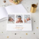 Para un elegante bautizo, neutral en género. Un fondo blanco moda. Personalice y añada 3 fotos verticales en la parte delantera, el nombre del niño y la fecha del bautizo. Letras negras y doradas. Espina: agrega tu propio texto: Atrás: agrega tu 1 foto horizontal en la parte posterior, nombre y fecha de nacimiento.