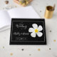 Un diseño sencillo y moderno con una flor simbólica, escritura blanca y un contorno blanco sobre negro formal. El reverso tiene todos los detalles del boda, personaliza la parte delantera y de vuelta a los detalles de su día especial. Una mirada clásica a un asunto formal. Estilo de coincidencia en Bridal Shower, RSVP, Save the Date y más. La flor hawaiana de Lei, Plumeria es un símbolo de "nuevos comienzos".
