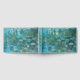 Libro de bodas con nombres de monogramas y fecha en Relieve metalizado dorado con fondo de pintura de Claude Monet Water Lilies.