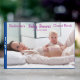 Vacaciones veraniegas en la playa durante los Navidades con pingüinos bailarines bajo las palmeras para personalizar para una niña o niño con su propia foto ( Gracias dice la cigüeña al fondo )