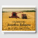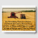 Una combinación roja y un tractor cosechan trigo. En la parte posterior se incluyen citas de Ecclesiastes 3:4. Para todo hay una temporada. Un momento para sembrar y un momento para cosechar. Un momento para llorar y un momento para reír. Un momento de duelo y de baile.