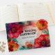 Presentamos "Nuestra Guía Boda", un tesoro personalizado que capta el amor y los buenos deseos de su día especial. La portada frontal presenta un elegante tipo de letra con el fondo de un fondo rojo escarlata de la colección Scarlet Petal Elegance, adornado con intrincados patrones de delicados pétalos rojos de amapola. Acompañado de los nombres de las parejas, la fecha de boda y la ubicación, esto crea una introducción atemporal a este querido keepsake. En la parte posterior, el fondo rojo escarlata sereno ofrece una bonita combinación de elementos. El lado derecho ofrece un espacio designado para el texto de personalizable, lo que permite a la pareja añadir un mensaje personal o detalles significativos. Mientras tanto, el lado izquierdo muestra una emotiva foto de la pareja, agregando un toque personal al libro de visitas. Este libro de visitas boda, diseñado con gusto, no sólo sirve como registro de los mensajes más sentidos de sus invitados, sino que también se convierte en un viaje visual a través de su historia de amor. Con su cuidadosa combinación de elementos de personalizable y un cautivador diseño de portadas, "Nuestro libro de visitas Boda" se convierte en un apreciado recuerdo de su alegre celebración.