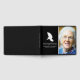 Elegante libro de condolencias (libro de visitas conmemorativas) con una foto de tu ser querido, un fondo negro que puede cambiarse a cualquier color, una paloma funeraria blanca y una plantilla de texto personalizada con su nombre y fechas.