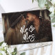 This custom wedding guest book features space to add your own photos on both the front and back covers, creating a beautiful and personal keepsake from your special day. On the front, “Mr. & Mrs.” is displayed in large white handwritten script over your photo, making a bold and elegant statement.